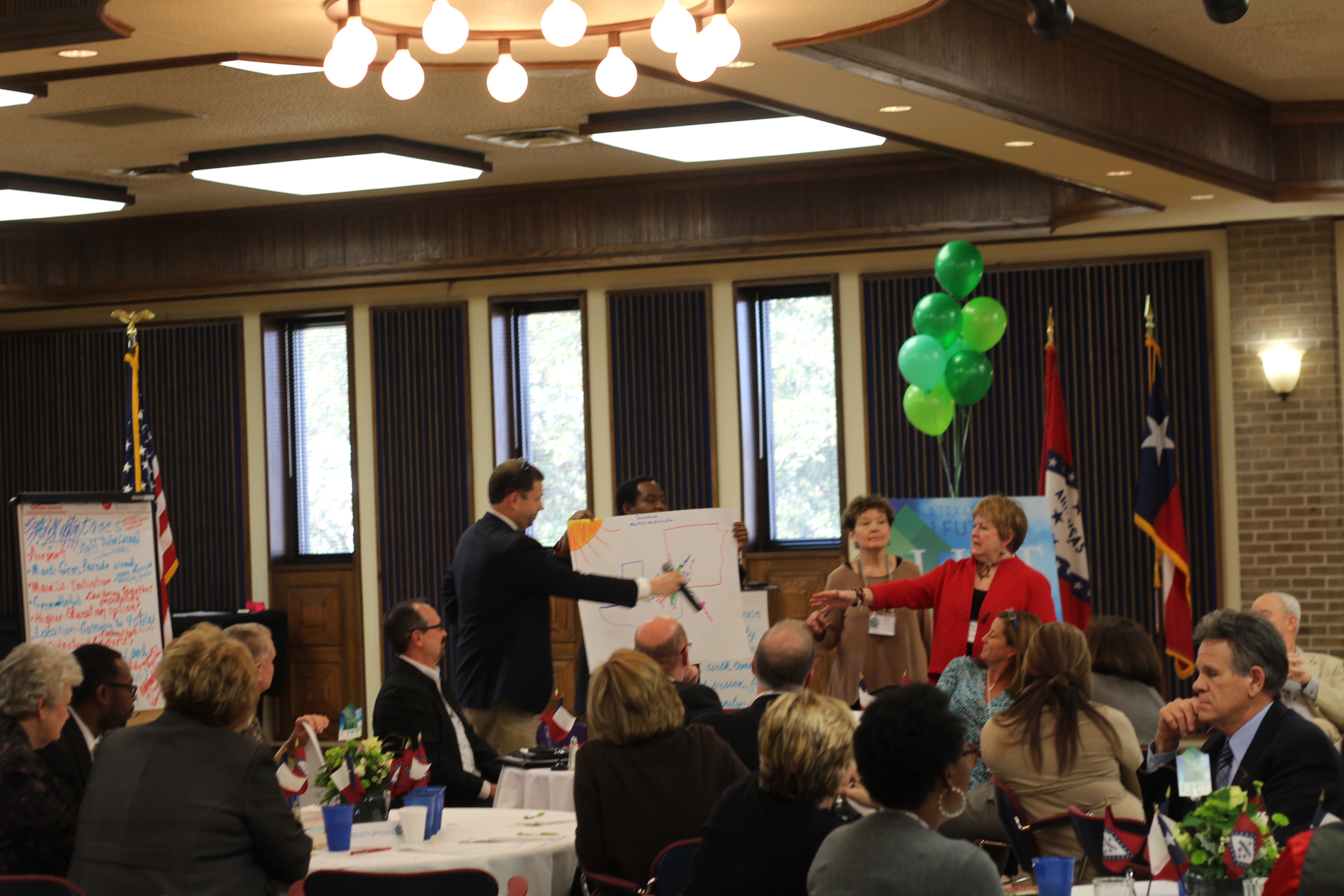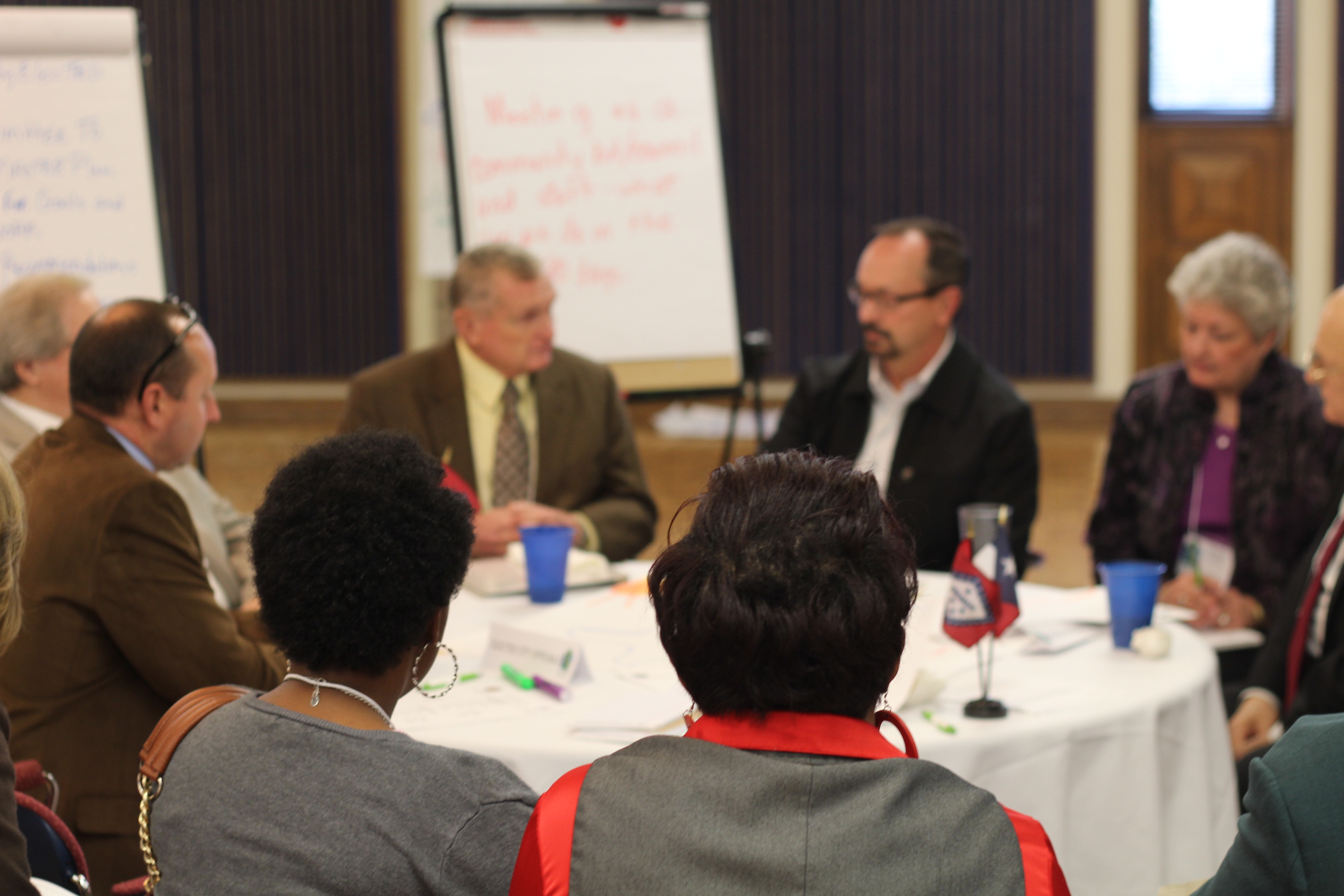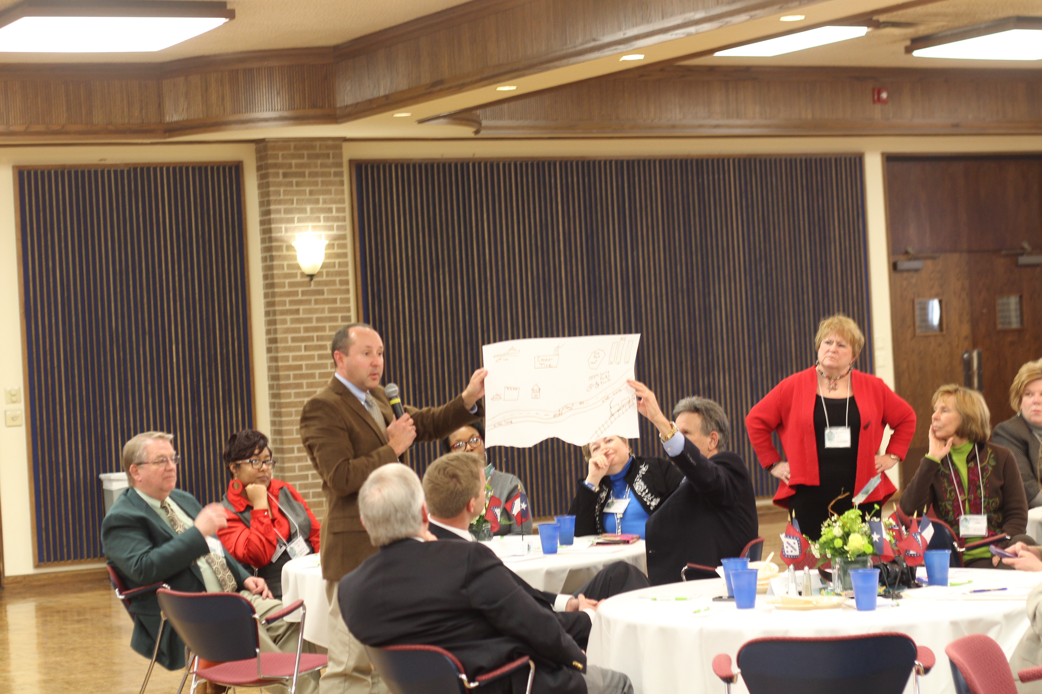 First, the consultants would pose a question and then asked the officials to work to together in three different groups to come up with ideas. The officials presented their findings to the audience. The consultants then helped the elected officials cultivate ideas on various topics and provide feedback.