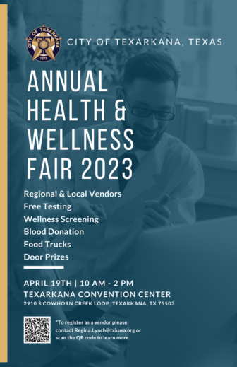 The City of Texarkana, TX Bowie County Health Department will host the Annual Health and Wellness Fair at the Texarkana Convention Center on Wednesday, April 19th, from 10:00 a.m. to 2:00 p.m.