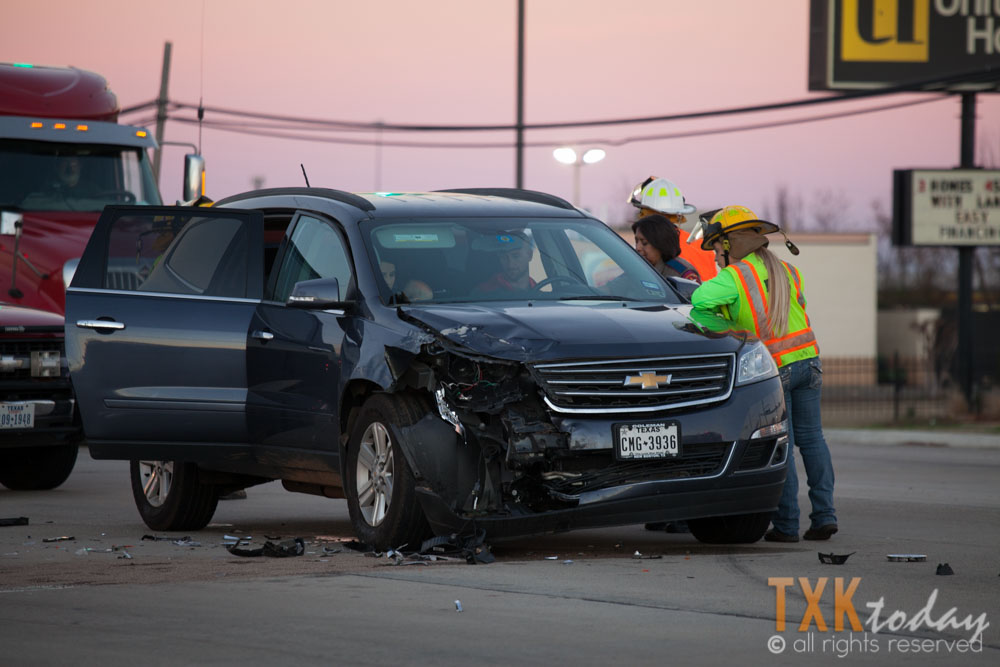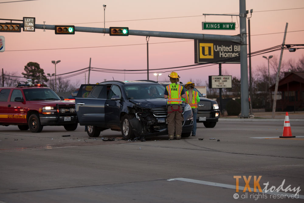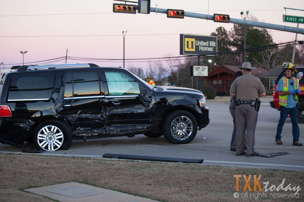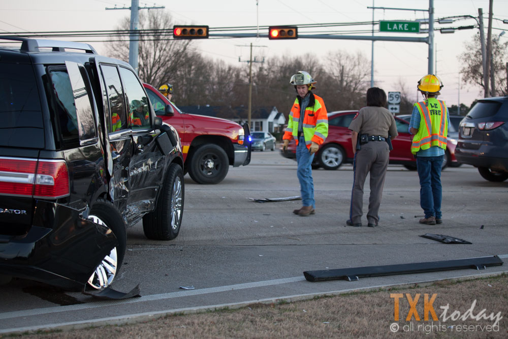 The collision occurred when a Chevrolet SUV traveling southbound on Highway 59 made contact with a Lincoln Navigator turning from Kings Highway onto Highway 59. According to a DPS officer on scene, the vehicle turning onto Highway 59 may have been trying to turn when the traffic light was yellow.