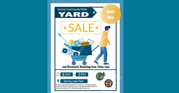The City of Texarkana, Texas Parks and Recreation Department will host the Spring Community Wide Yard Sale Saturday, May 8, 2021 at Spring Lake Park. The yard sale will begin at 8:00 a.m. and last until 3:00 p.m.