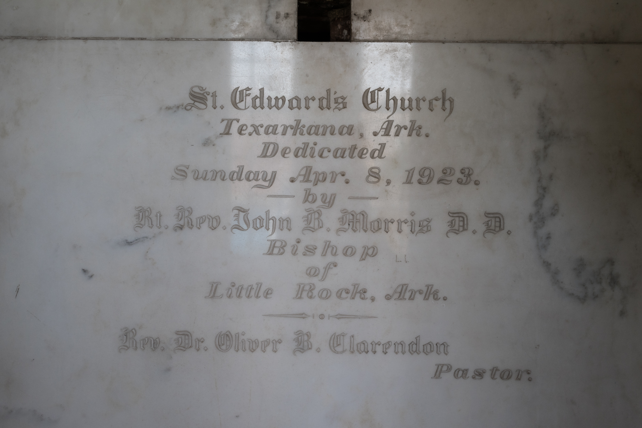 Founded on June 20, 1903 by Reverend Edward Fitzgerald, the parish provided a home to Catholics in Arkansas. On December 25, 1903, Christmas Day, on 4th and Hickory, a frame chapel was dedicated and its first Mass was officially held that same day.