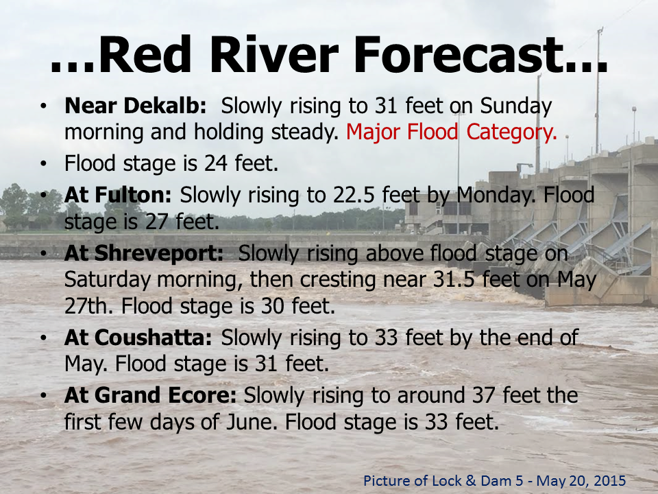 Current forecasts indicate the continuation of severe thunderstorms, large hail, damaging winds, flash flooding, river flooding and tornadoes across the state throughout the week. At this time, any additional rainfall will exacerbate already saturated grounds, which could quickly lead to dangerous flash flooding and extended river flooding.