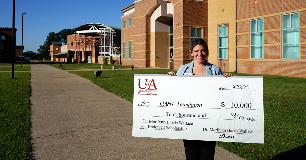 Dr. Marilynn Harris Wallace of Huntsville, Alabama, recently established the Dr. Marilynn Harris Wallace Endowed Scholarship at the University of Arkansas Hope-Texarkana. Preference for the scholarship is given to a student with the greatest unmet need pursuing a degree in healthcare.