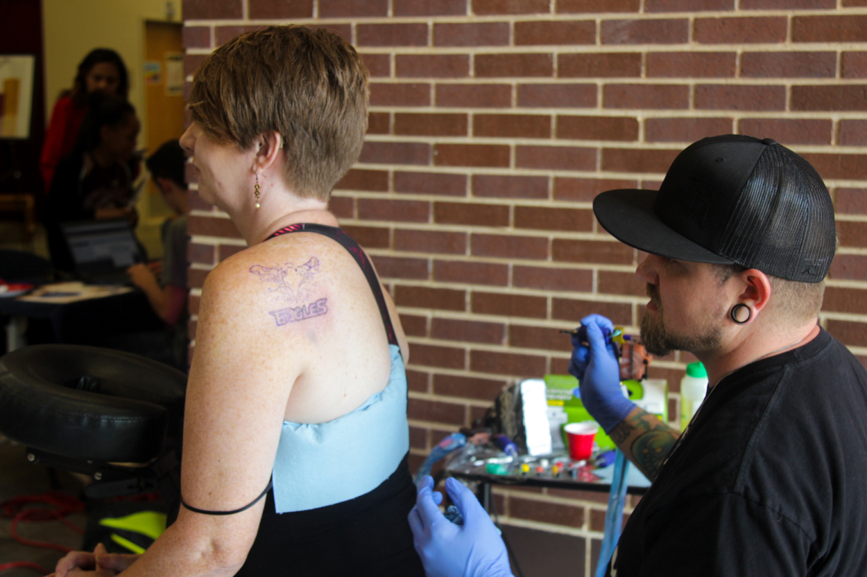 Texas A&M University-Texarkana celebrated meeting its fall 2016 enrollment goal and kicked off its “Leave Your Mark: Recruit an Eagle” peer recruitment campaign with a live tattoo event on Monday, Oct. 24, in the lobby of the University Center.