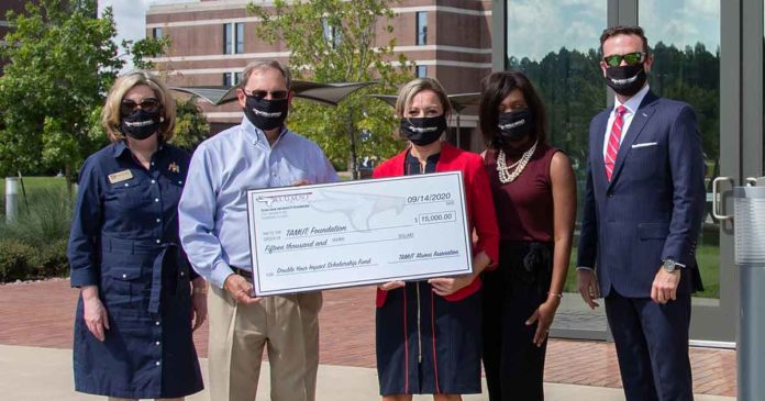 The Texas A&M University-Texarkana Alumni Association recently made a $15,000 donation to the Texas A&M University-Texarkana Foundation Board’s “Double Your Impact” scholarship initiative. Members of the TAMUT Foundation Board of Directors have pledged to match donations dollar for dollar up to $1 million. The $15,000 donation from the alumni association will contribute $30,000 in much needed scholarship money for A&M-Texarkana students.