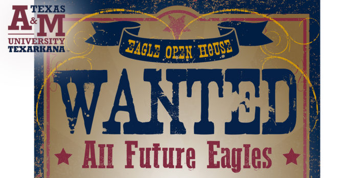 Texas A&M University-Texarkana will host Eagle Open House for prospective students and their families on Thursday, April 13, from 10 a.m. to 3 p.m. in the University Center on the campus of A&M-Texarkana, 7101 University Ave., Texarkana, Texas.