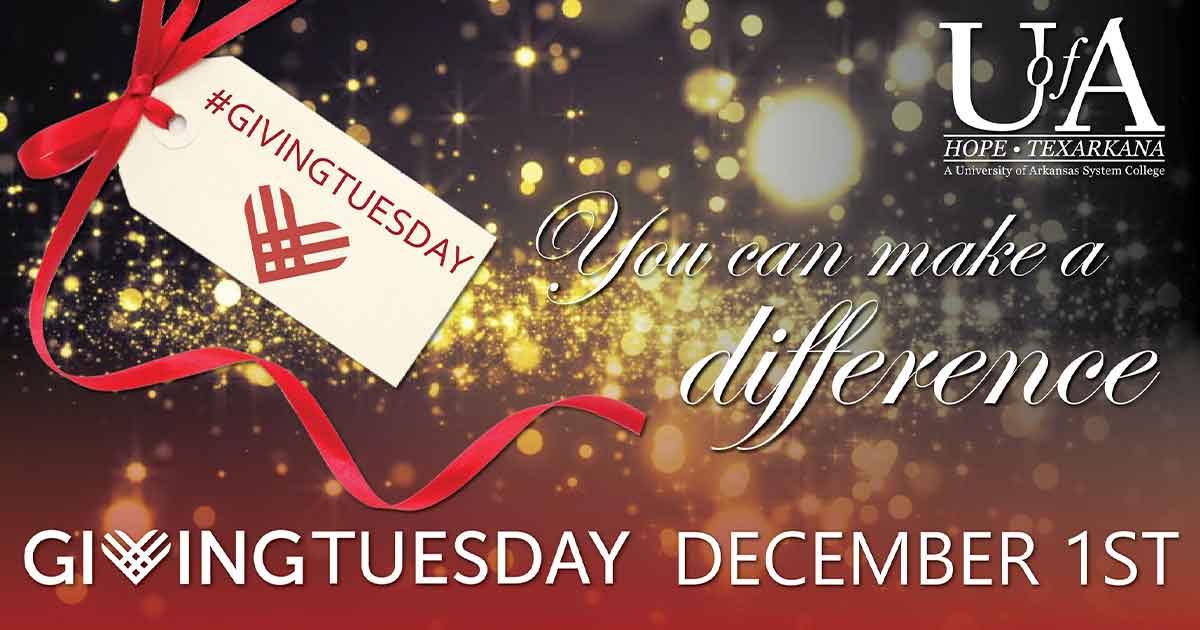 Join the University of Arkansas Hope-Texarkana Foundation as we participate in #GivingTuesday, a national day of generosity. #GivingTuesday is a global movement that unleashes the power of people and organizations to transform their communities and their world. This is a day when you can make a tremendous impact on the UAHT Foundation and, in turn, the lives of our many students. Donations can be made anytime between now and Tuesday, December 1, 2020.