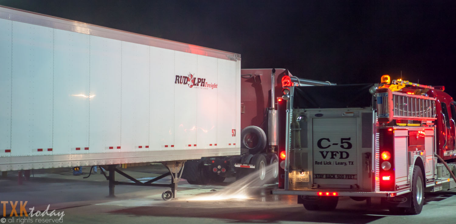 11:00 P.M. Friday night Red Lick / Leary Volunteer Fire Department responded to a call of a truck exploding at the Love’s Truck Stop in Leary. A Firefighter on scene confirmed the eighteen wheeler’s brake’s over heated and caused an airbag to explode.