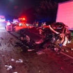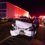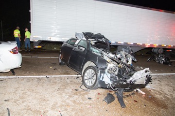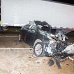 Corporal Easley said the Chrysler crashed into the right rear of the trailer and then was hit from behind by a white Chevrolet Cobalt. Both vehicles came to a stop in the right lane. The male driver was the only occupant in the Chrysler and was severely injured and entrapped in his decimated car.