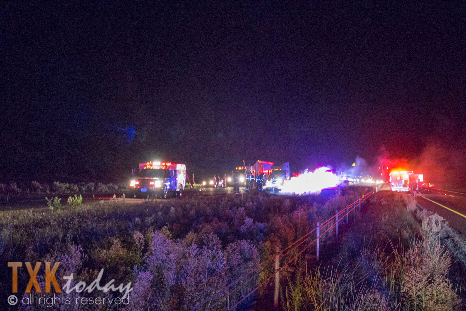 12:30 A.M. Monday | Bowie County Sheriff, Nash Police, Texas DPS Troopers, Hooks Fire and Police, and C5 Fire were on scene of a 2 vehicle accident involving a motorcycle and a pickup truck.