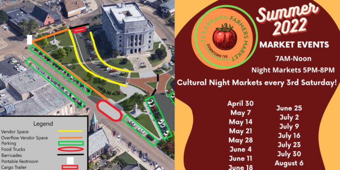 The Texarkana Farmers Market is located Downtown outside of the Post Office. Parking is located around the venue.