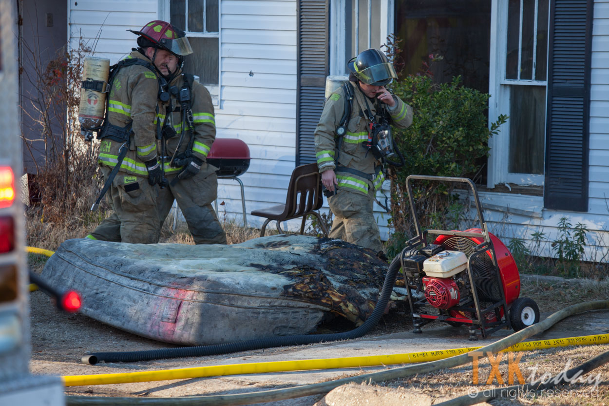 Fire Fighters could be seen removing a badly burned mattress from the residence.