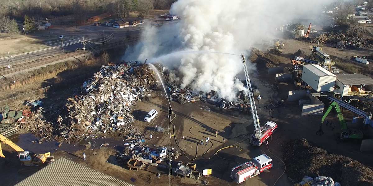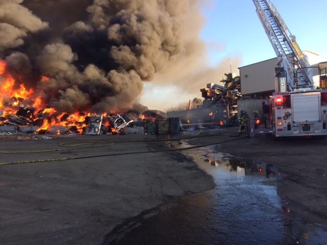 The Texarkana Arkansas Fire Department responded to recycling material on fire at Tri-State Iron and Metal at 0745 hours. The call was upgraded from one unit to two units and a battalion chief based upon the large amount of smoke being seen from the one unit while responding to that location. The first arriving unit stated that they observed a portion of a large pile of debris on fire when they arrived on scene. At that time, all remaining TAFD units were dispatched to the scene.