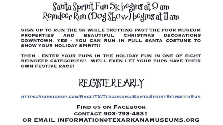The Texarkana Museums System will host the First Annual Santa Sprint and Reindeer Run on December 13 at the Ace of Clubs House in downtown Texarkana.
