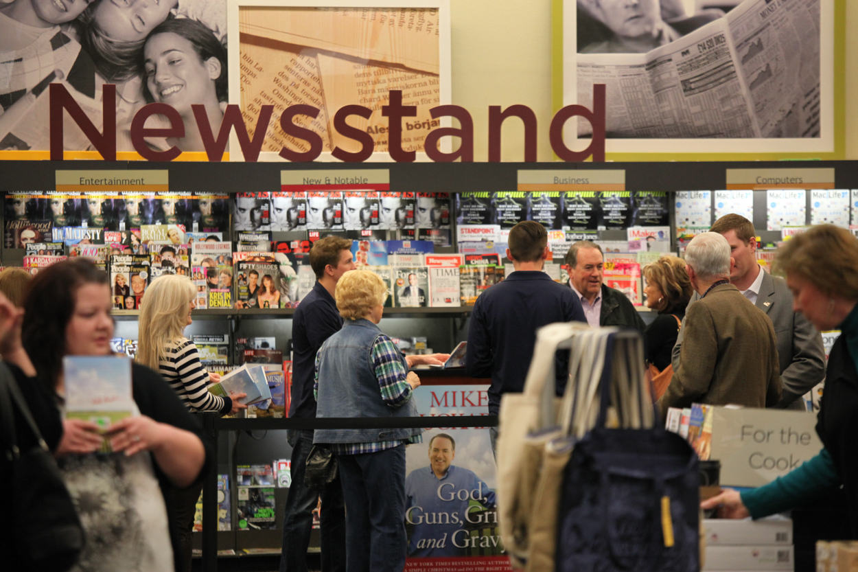 Former Arkansas Governor Mike Huckabee made a stop at Texarkana’s Books-a-Million Saturday to sign his newest book “God, Guns, Grits, and Gravy.”
