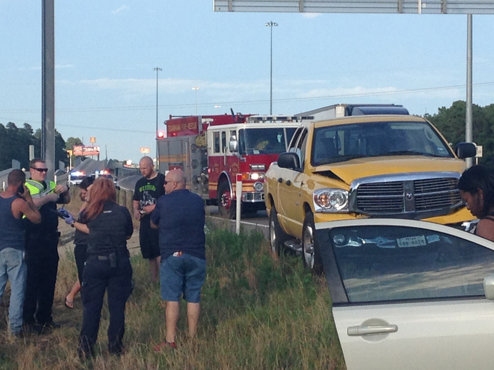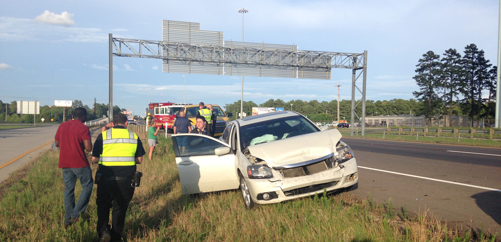 According to the driver in the front, a car traveling along the access road pulled out in front of his vehicle while he was traveling on I-30. As a result, he applied his brakes and three cars behind him collided with him and each other. The initial car that cut off the front vehicle did not stop.