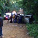 There were reported to be six passengers ranging in age from 18 months to 17 years of age. Initial reports indicate at least four passengers were ejected from the vehicle. The condition of any occupants is unknown at this time. A first responder on scene said that they 18 month old child sustained the least injuries. One occupant was transported by LifeNet Helicopter to an area Hospital.