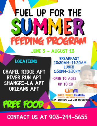 For more information about this summer feeding program or United Families of America – Arkansas, please call 903-244-5655.