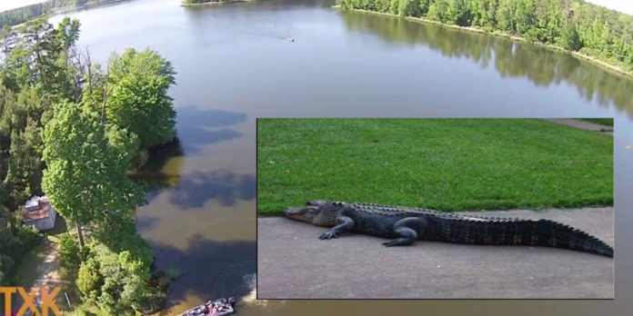 Texarkana Golf Ranch, located also neighboring Bringle Lake shared a video captured by TGR member Adam English of the same alligator right off of hole 10 bridge.