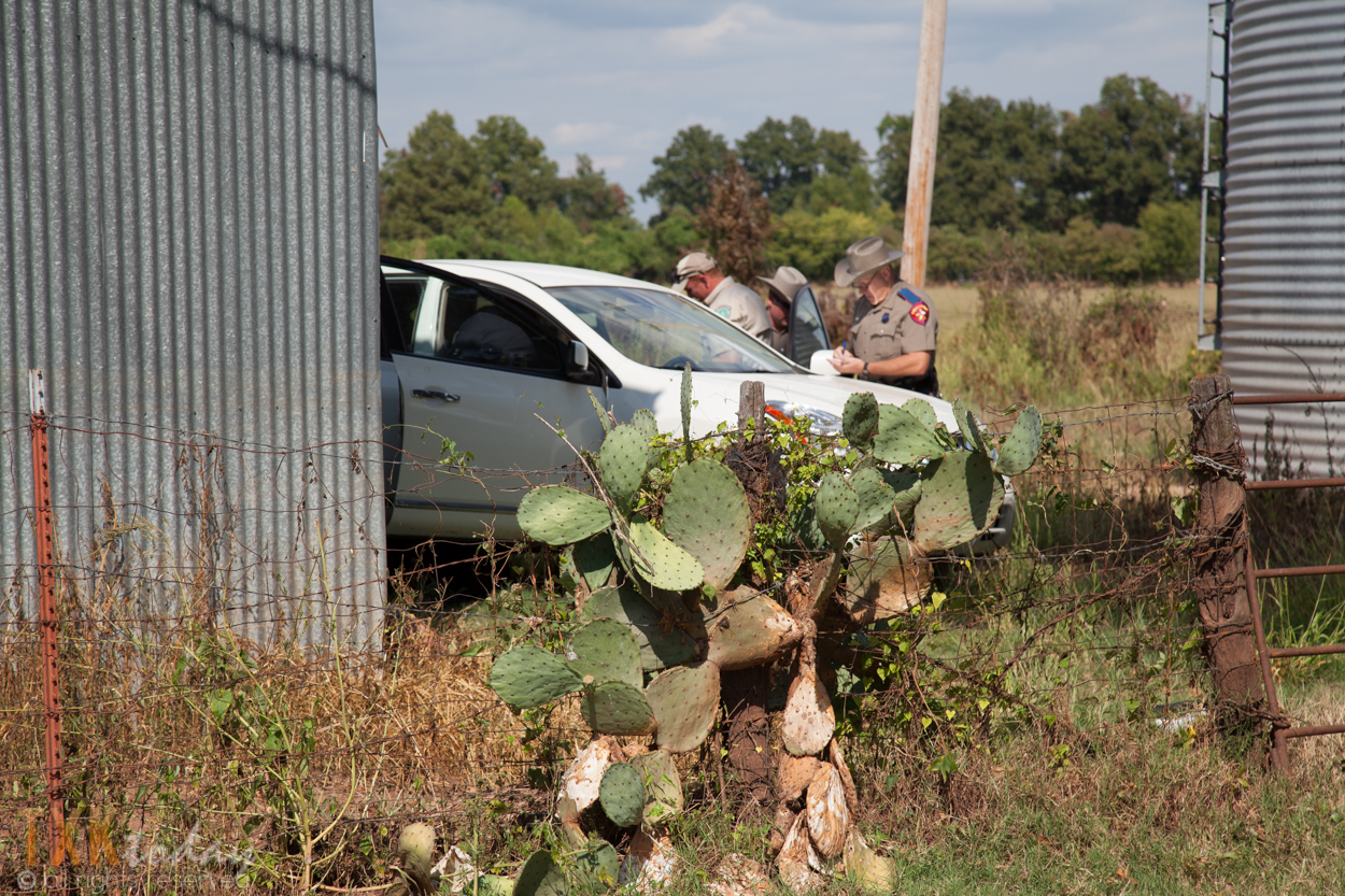 According to police on scene Texas game warden Shawn Hervey was approaching the vehicle when it struck him and ran over his foot. Moments later another game warden rammed the suspect vehicle blocking it into a fenced area.