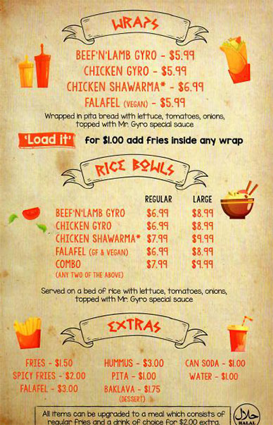 The Mr. Gyro truck will serve traditional Greek food such as beef’n’lamb gyros, chicken gyro, chicken shawarma, and falafels.