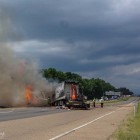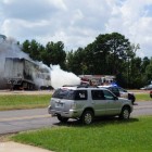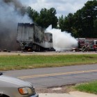 Upon arrival officers were advised that a flatbed 1 ton truck pulling a trailer eastbound on Hampton Road lost control and struck the guardrail then entered the westbound lane of Interstate 30 and was struck head on by an 18 wheeler. Both east and west bound I30 will be closed until the scene is investigated and cleared.