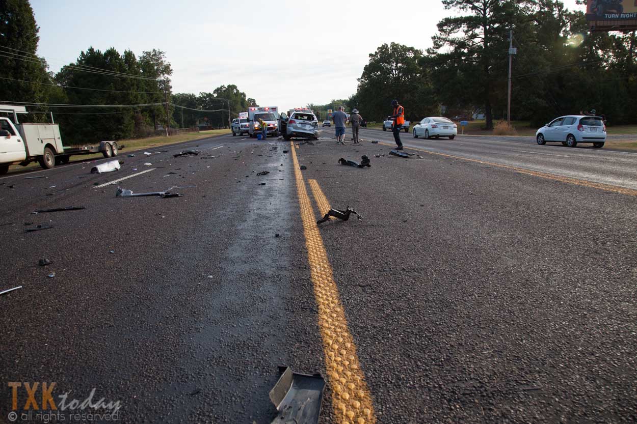 A major collision involving a car and a semi-truck left much of Highway 59 blocked Wednesday morning just south of 2516.