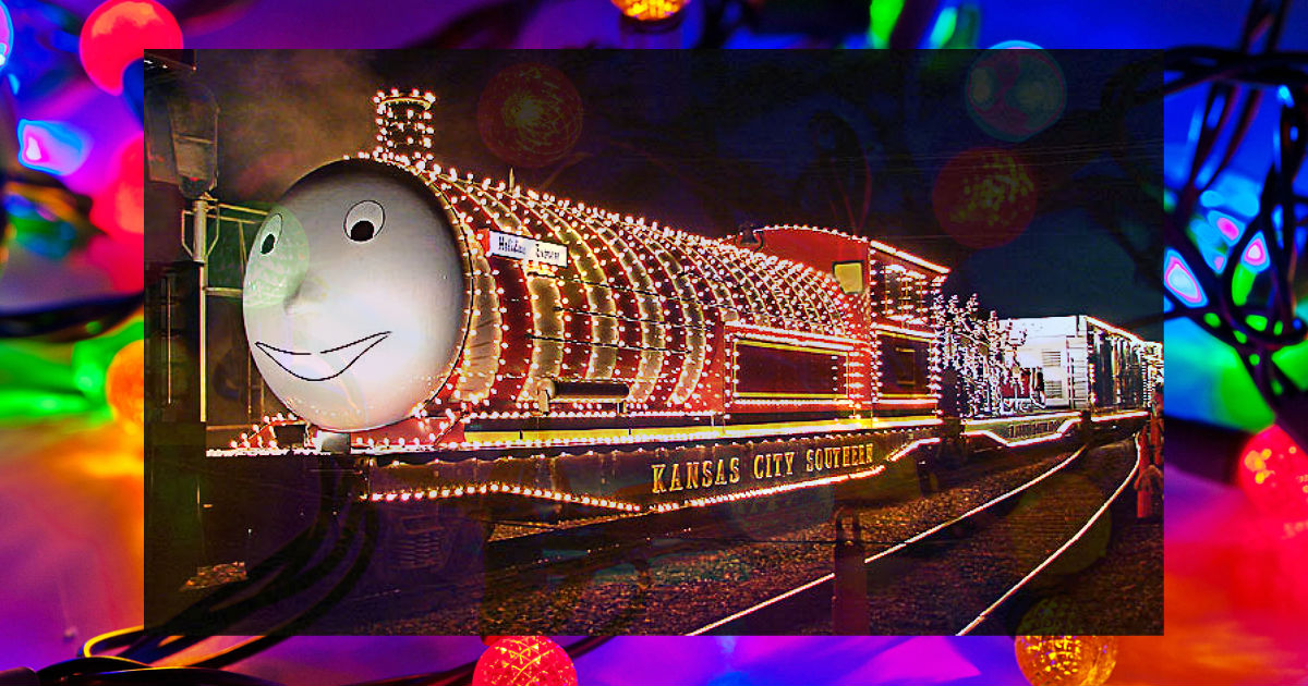 Led by KCS’ Southern Belle business train, the Holiday Express includes: a smiling tank car, Rudy; a flatcar carrying Santa’s sleigh, reindeer and a miniature village; a gingerbread boxcar; a newly remodeled elves’ workshop; the reindeer stable; and a little red caboose. Each car is dressed in lights.