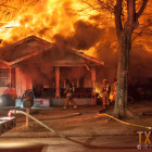 The house appeared to be a total loss. There did not appear to be any major injuries. The cause of the fire is unknown at this time.