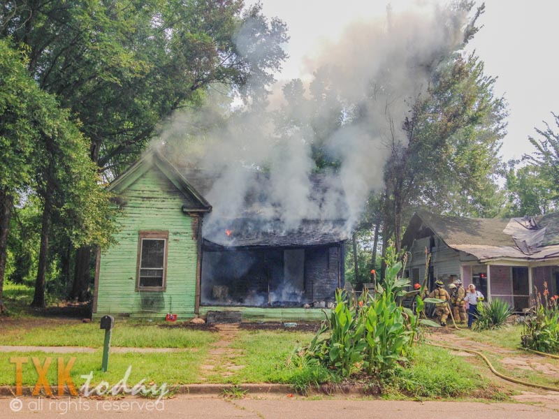 When TXK Today arrived on scene the woman occupant of the house was franticly saying that “he did it and ran off that way” pointing up Waterall St. According to the mother the baby was in the house with a friend that was watching it when the fire started. The house had no utilities connected and a neighbor said that she didn’t even think anyone was supposed to be living there after the elderly owner died. The house appeared to be a total loss and no one was injured.