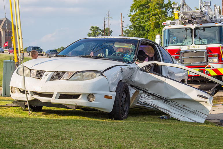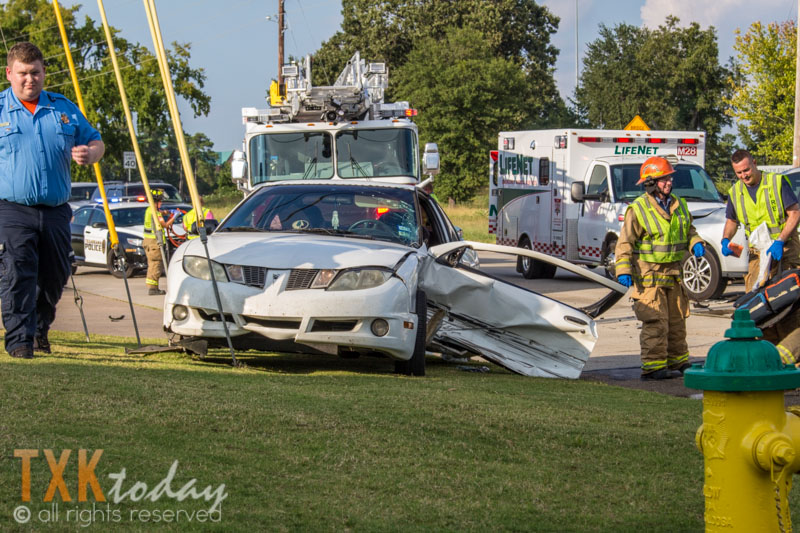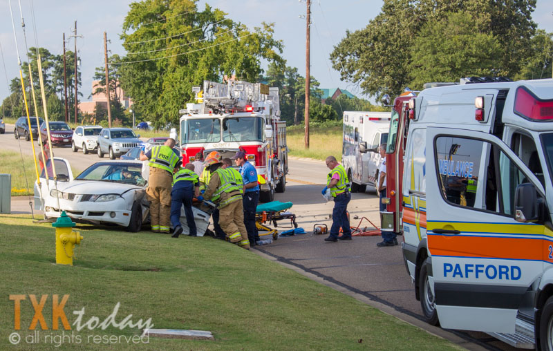 Texarkana, Texas Fire Department used extraction tools to get the driver out of the car. No one appeared to suffer life threatening injuries.