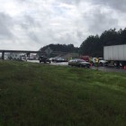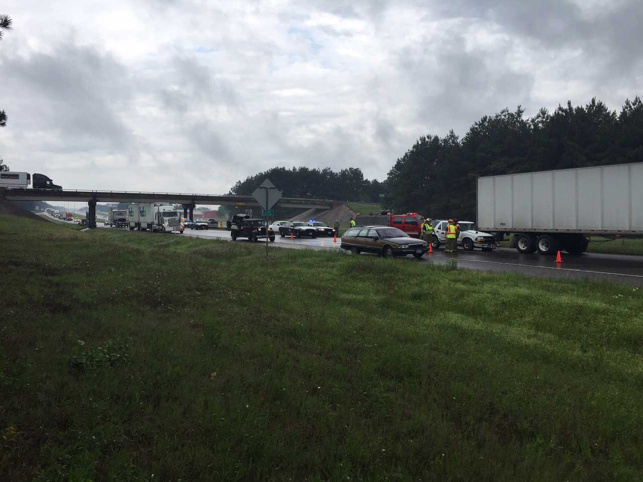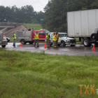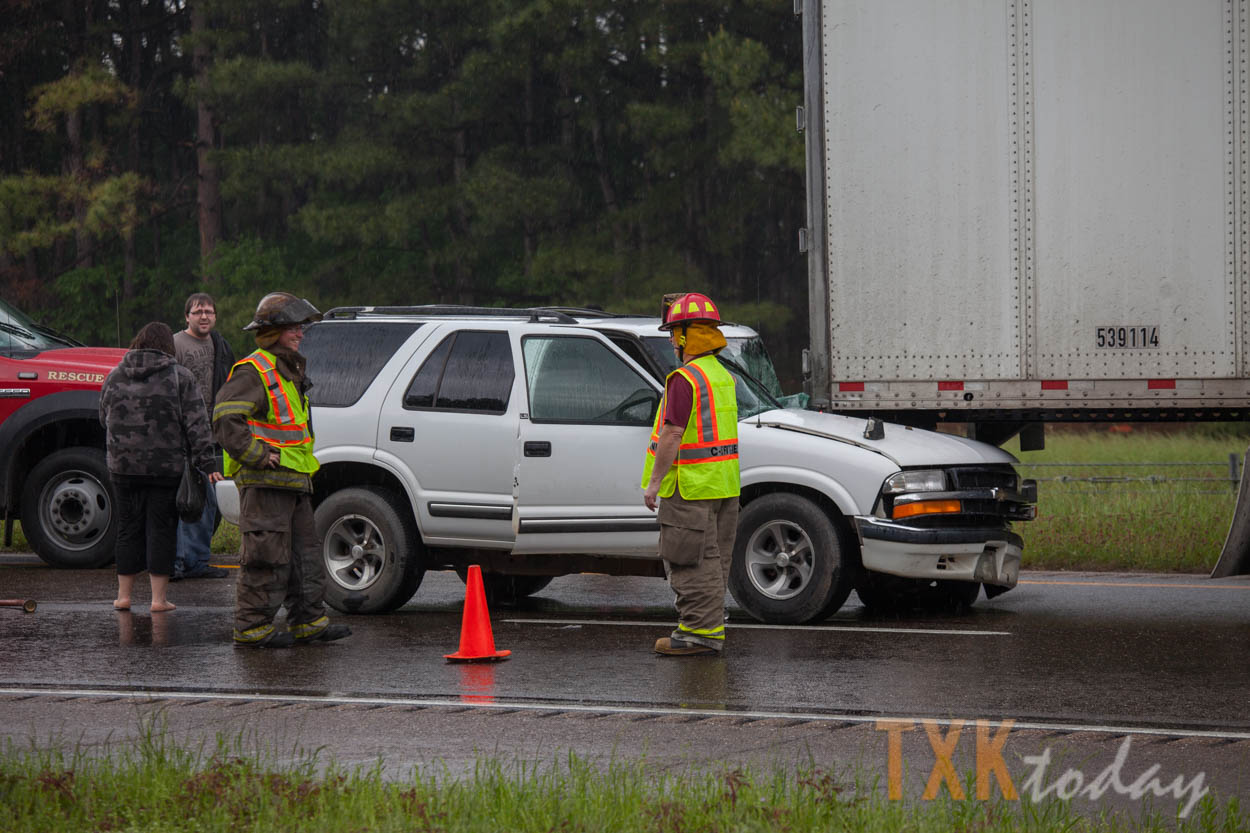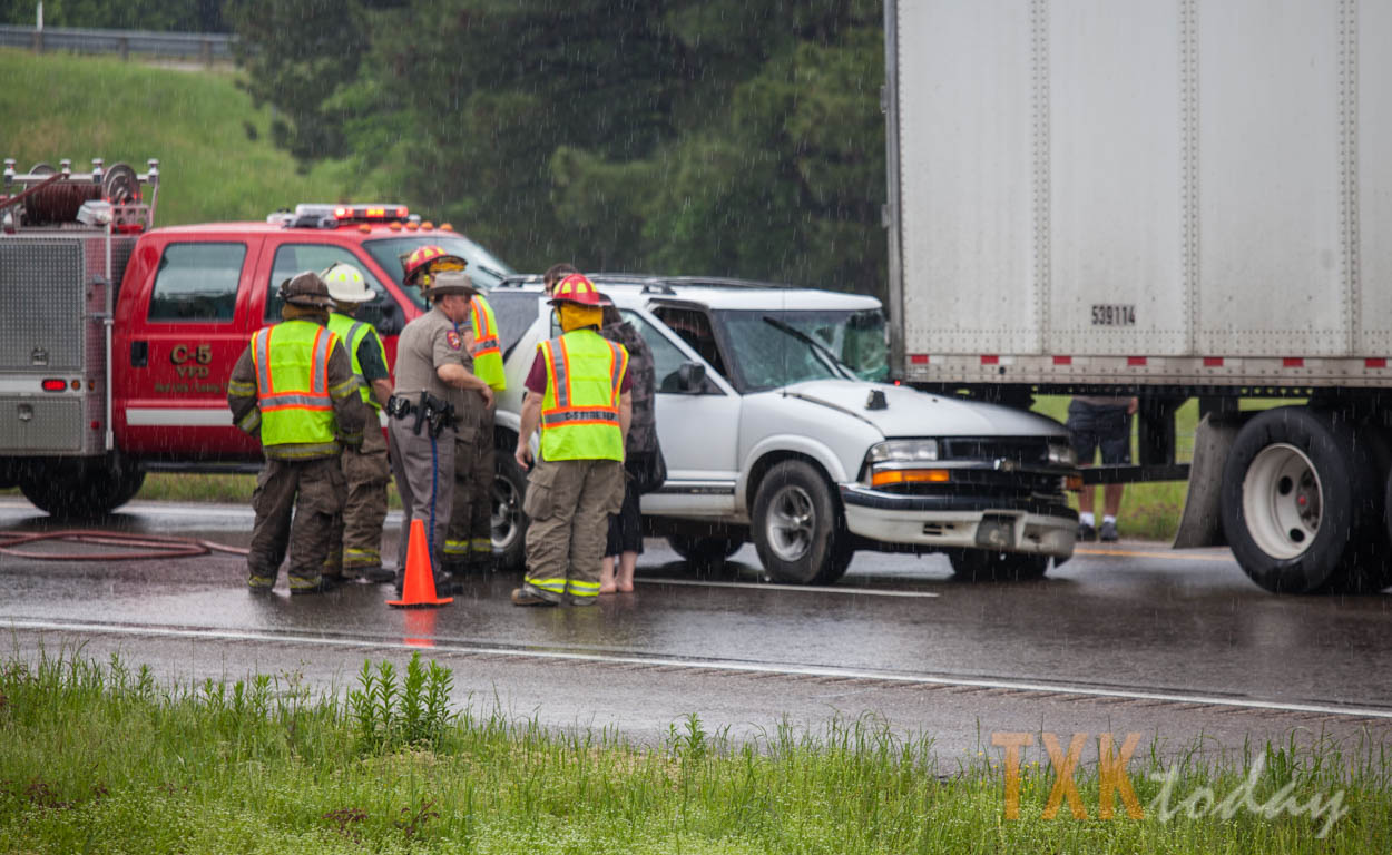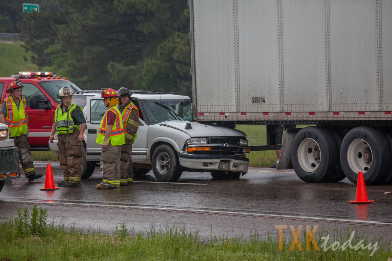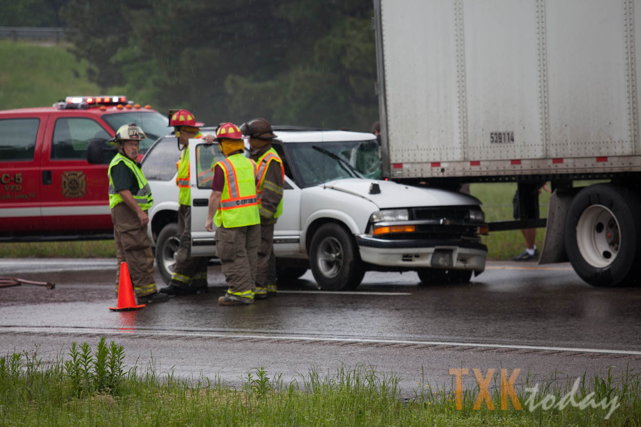 C-5 Fire Department was on scene of a fuel spill from a semi-truck just to the east of the accident when it occurred. Interstate 30 also goes to one lane at the 215 eastbound mile marker due to road work.