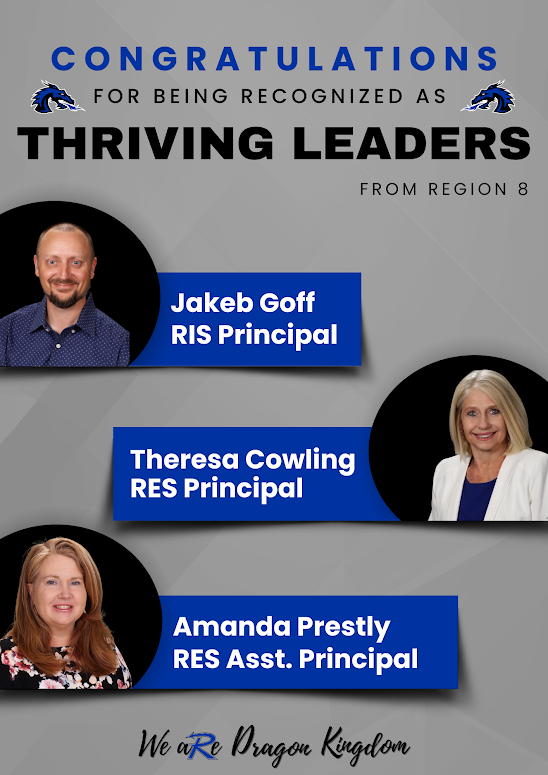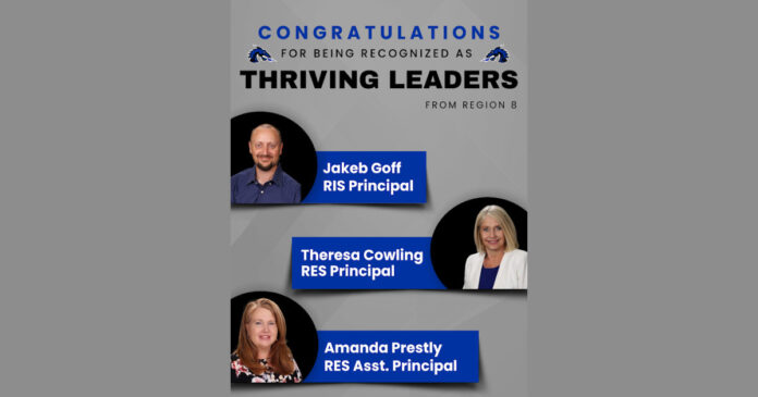 Redwater, TX – Jakob Goff, Principal of Redwater Intermediate School; Theresa Cowling, Principal of Redwater Elementary School; and Amanda Priestly, Assistant Principal of Redwater Elementary School, have qualified as “Thriving Leaders” for the 2023 – 2024 school year by Region 8.