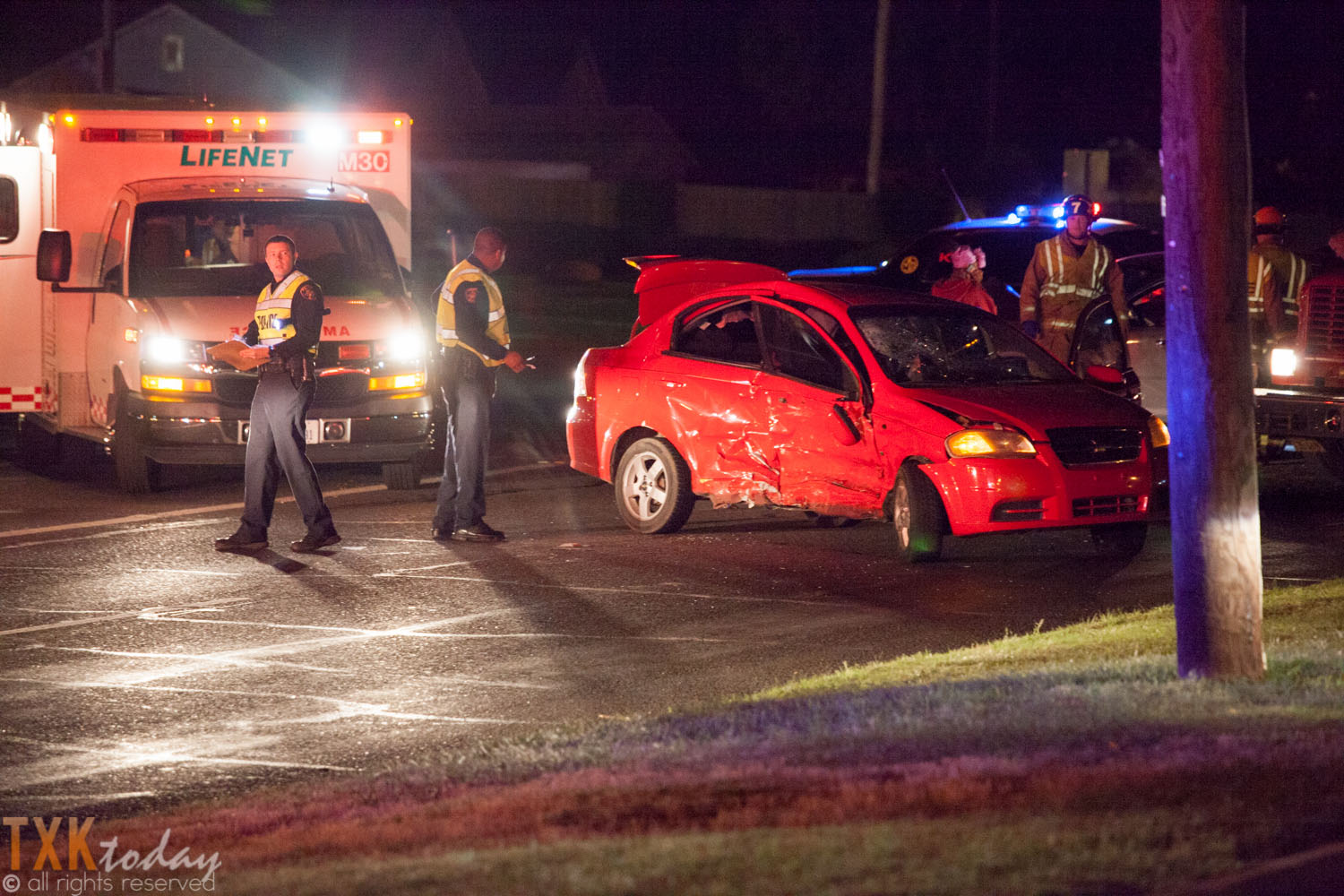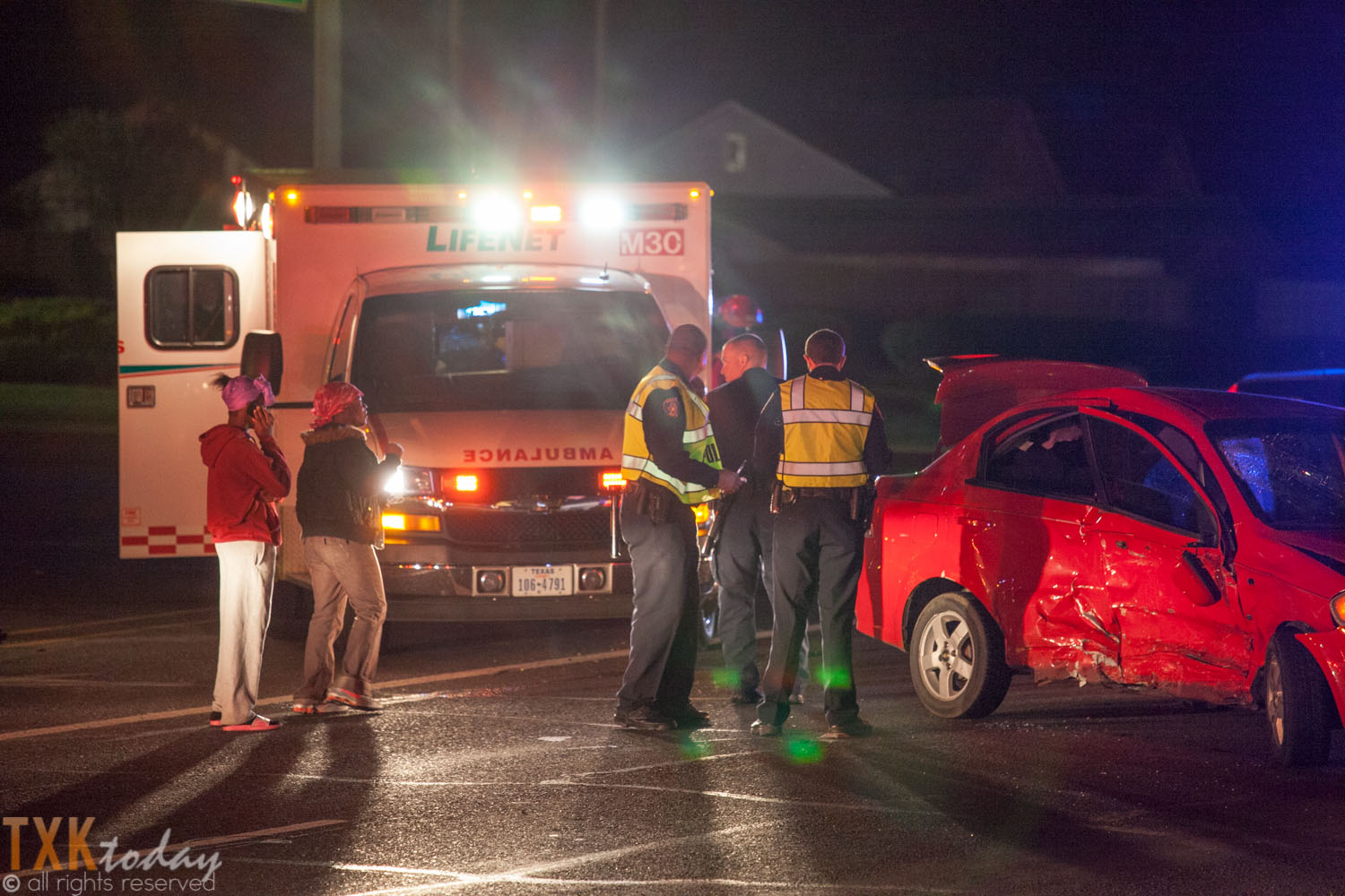 12:30 A.M Friday Morning police, fire, & ambulance responded to a 2 car motor vehicle accident at the intersection of New Boston Rd. and Summerhill Rd. in Texarkana, Texas. One of the occupants was taken to a local hospital after telling officers that she thought she was going into labor.
