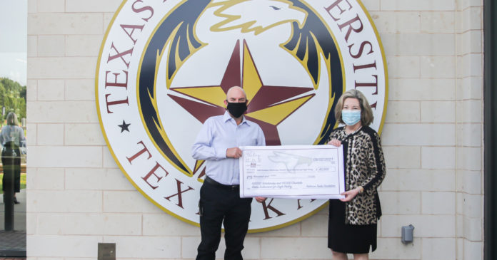 The Patterson Troike Foundation presented the university with a donation in the amount of $40,000, with $25,000 going to the anniversary scholarships and $15,000 going to the Charlotte Sharp Endowment for the Eagle Pantry, a food bank on the A&M-Texarkana Campus.