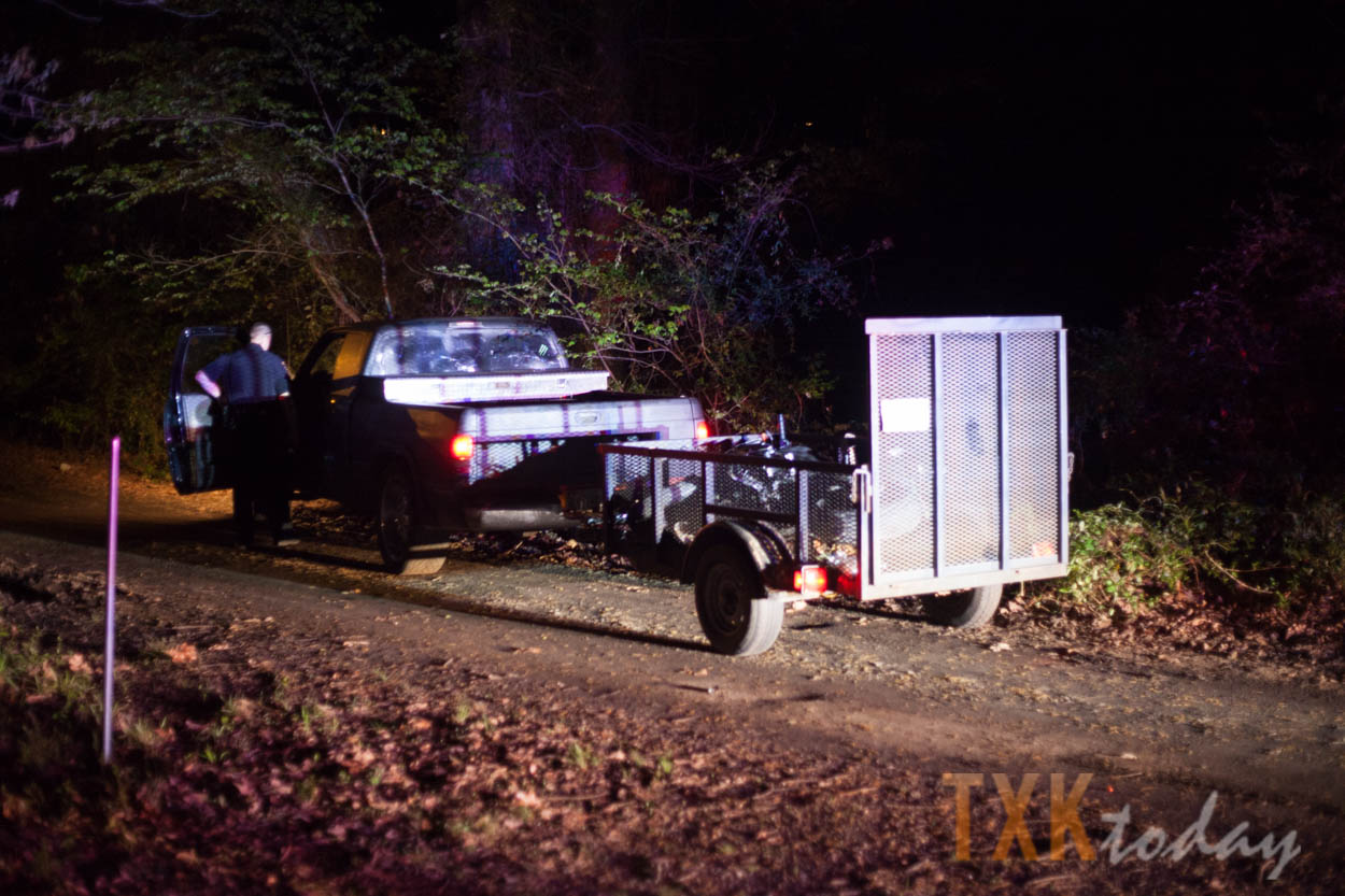 A Texarkana, Texas police officer attempted to pull a truck over that had a stolen motorcycle on a trailer on Old Boston Rd. at N. Kenwood. According to police radio traffic the vehicle fled up N. Kenwood before bailing at the dead end of Franklin Street.