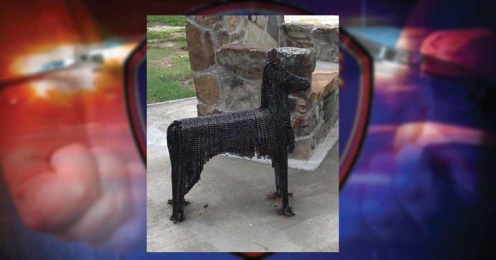 This morning Texarkana Arkansas City Parks reported to police that a statue was stolen from the Jefferson Dog Park.