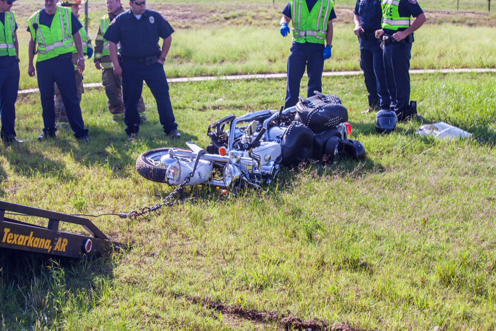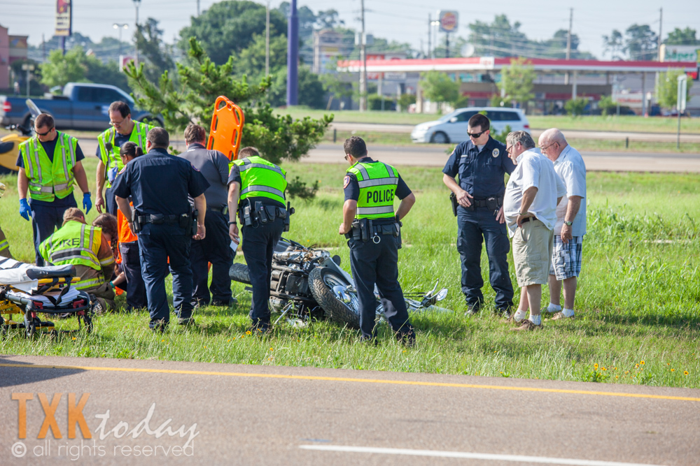 4:00 P.M. Thursday | Texas side fire & police responded to Mall drive in front of Billy Sims BBQ for a single vehicle accident involving a motorcycle.