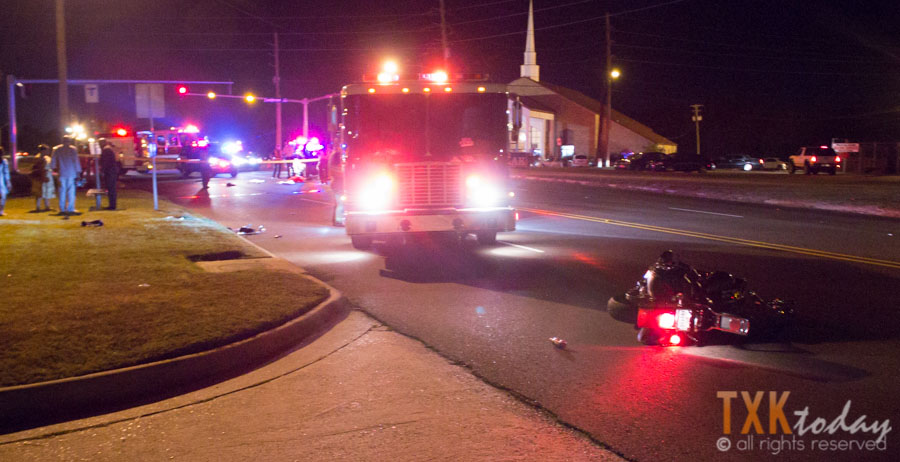 9:00 p.m. Sunday | Texarkana, Arkansas Police and Fire Departments were on scene of a motorcycle vs pedestrian accident on Arkansas Blvd. at Sanderson Lane.