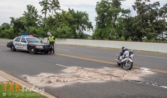 A witness said that the driver of the motorcycle didn’t slow down at all as the truck slowed down to turn. A large imprint could be seen in the back of the trailer where the helmet made contact. The witness said that the driver was wearing a helmet but he was not breathing and his lips were turning blue. A first responder on scene did update to say that they did get the driver breathing.