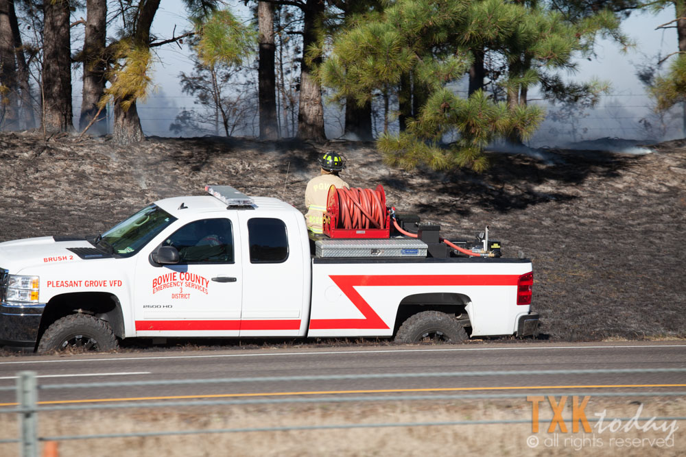 2:00 p.m. Thursday | A grass fire at the Leary, Texas exit on Interstate 30 had three local fire departments respond to help extinguish Christmas afternoon.