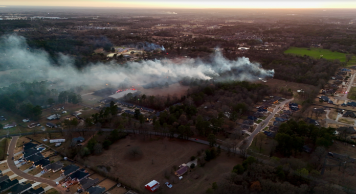 Multiple fire departments are responding to a grass fire off Kings Highway in Texarkana near Pleasant Grove Baptist Church.