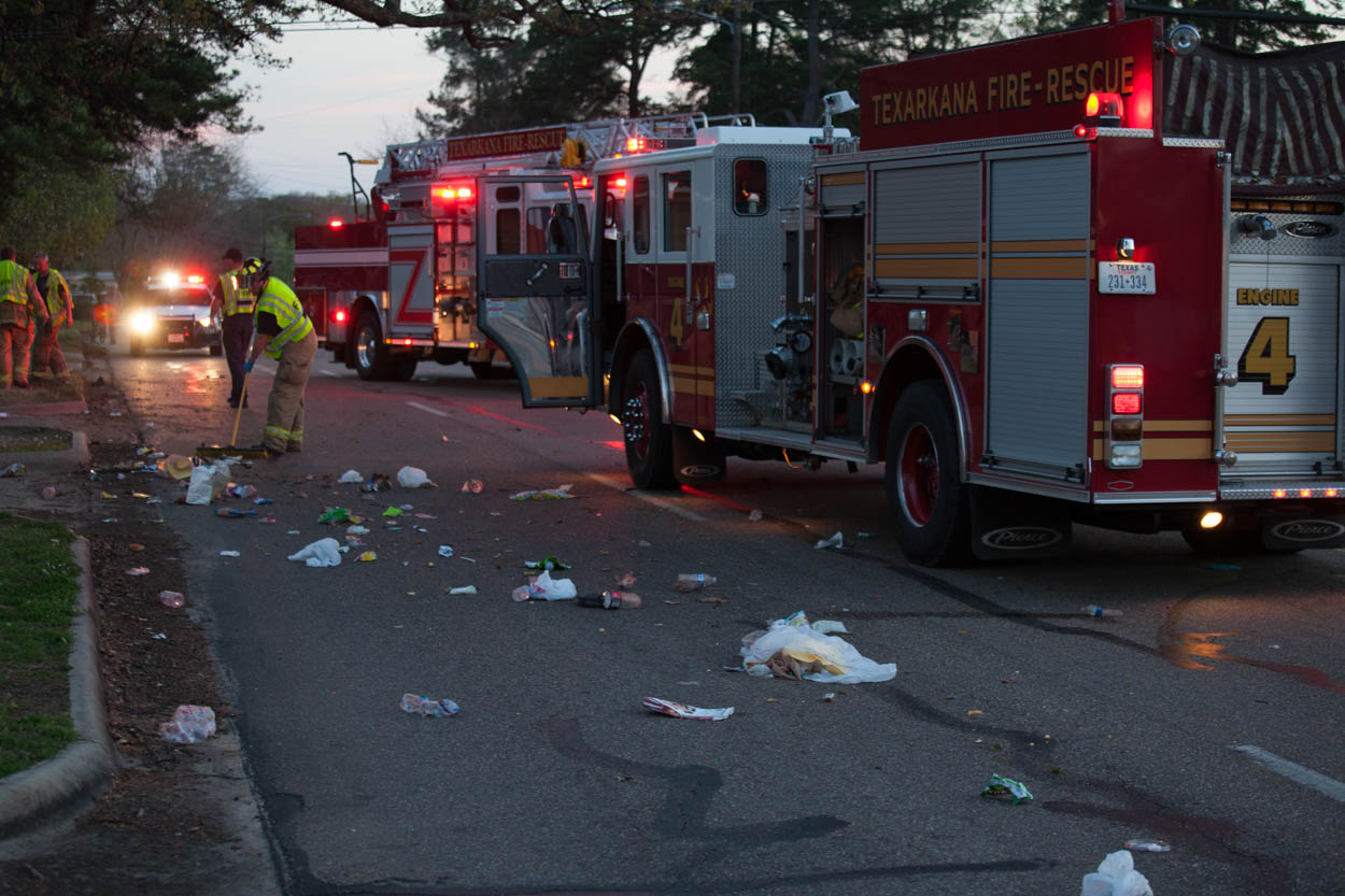 According to radio traffic an off duty Bowie County Sheriff’s Deputy witnessed the accident and started pursuing a black Ford F-150 that was leaving the scene. Bowie County Sheriff’s Office Deputies and Texarkana, Texas Police Officers soon reported that the truck was stopped in Central Mall parking lot off of Cowhorn Creek.