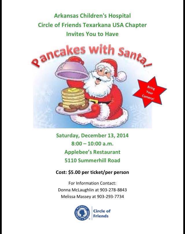 December 13, 2014 | Arkansas Children’s Hospital Circle of Friends Texarkana held “Pancakes With Santa” this morning from 8 am to 10 am at Applebees on Saturday, December 13, 2014.
