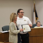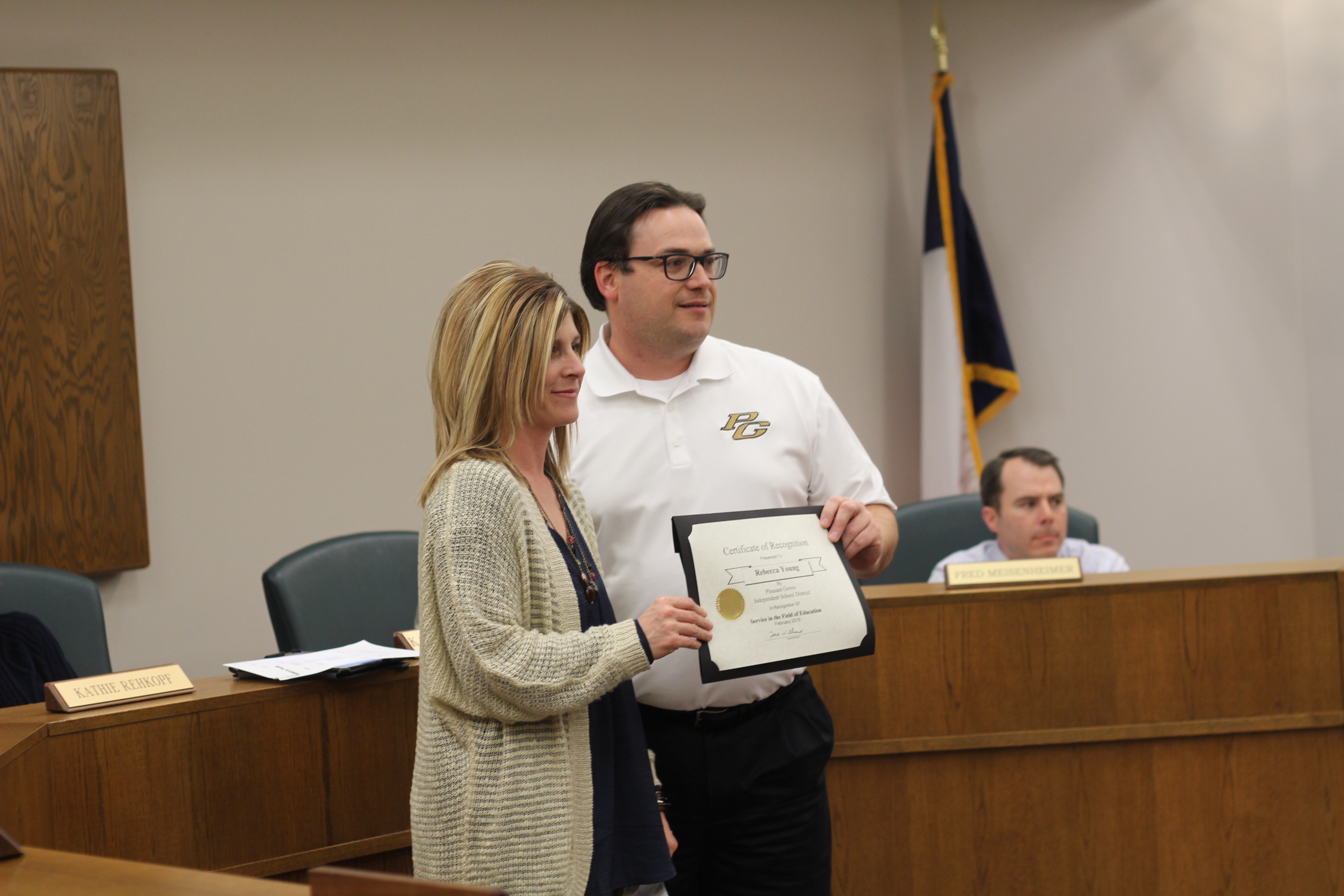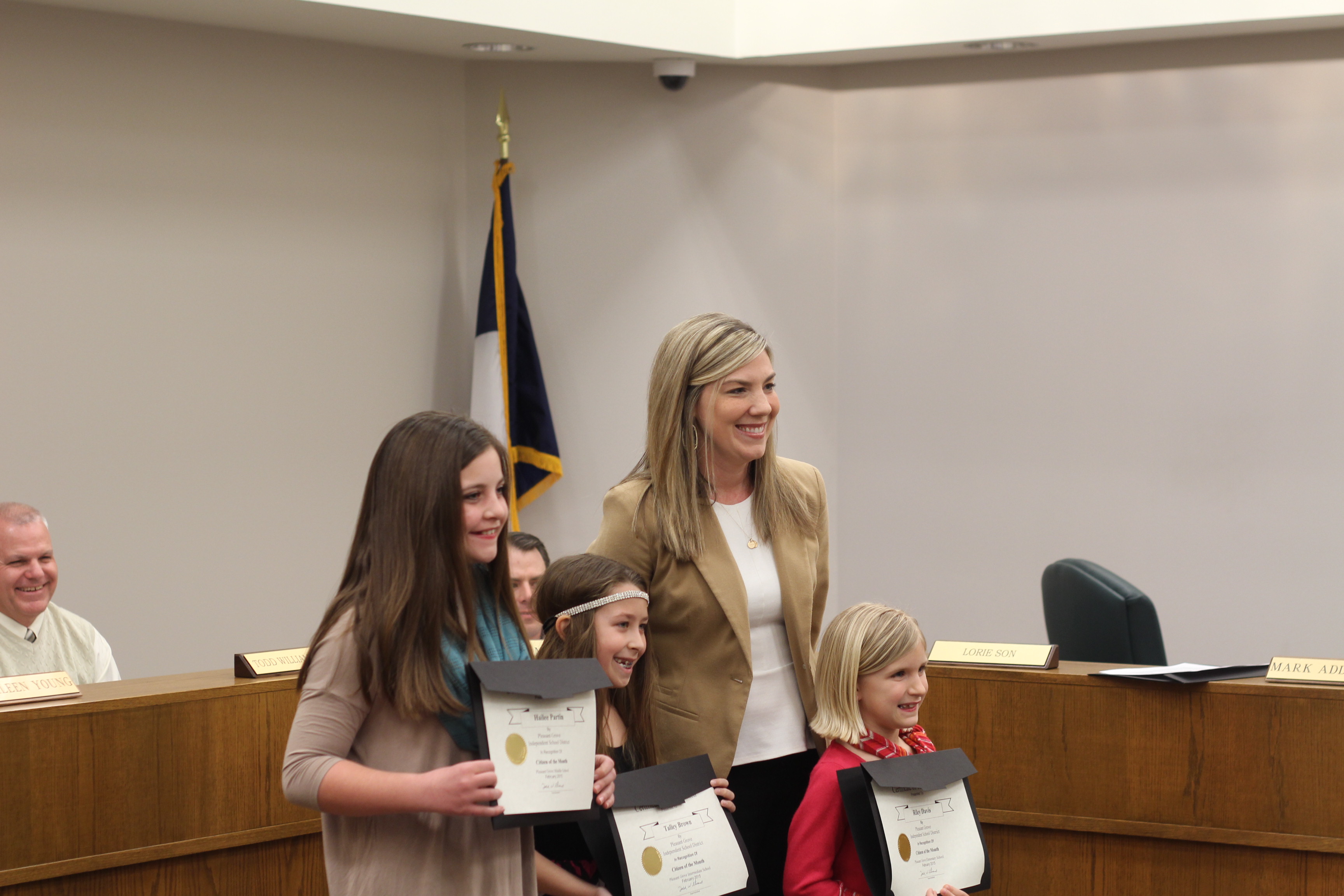 The board meeting started off with an awards presentation to students and businesses in the community.