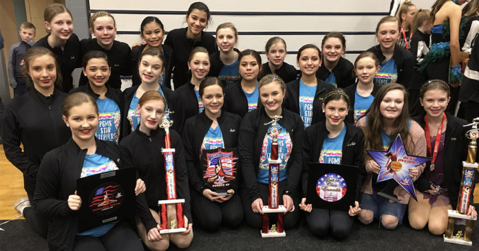The Pleasant Grove Middle School Star Steppers received top awards in Kilgore, TX on January 26 for their competitive routines in lyrical, pom, and novelty at the Gussie Nell Davis Dance Classic American Dance/Drill Team Competition. They received 1st place in Medium Ensemble, the Sweepstakes Award, Bronze Best Overall Choreography, Middle School Best in Class Runner Up, and the 1st Place Academic Award with an overall 3.6 grade point average. 8th grader Edie Neal received 1st place in the Middle