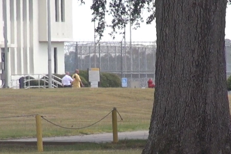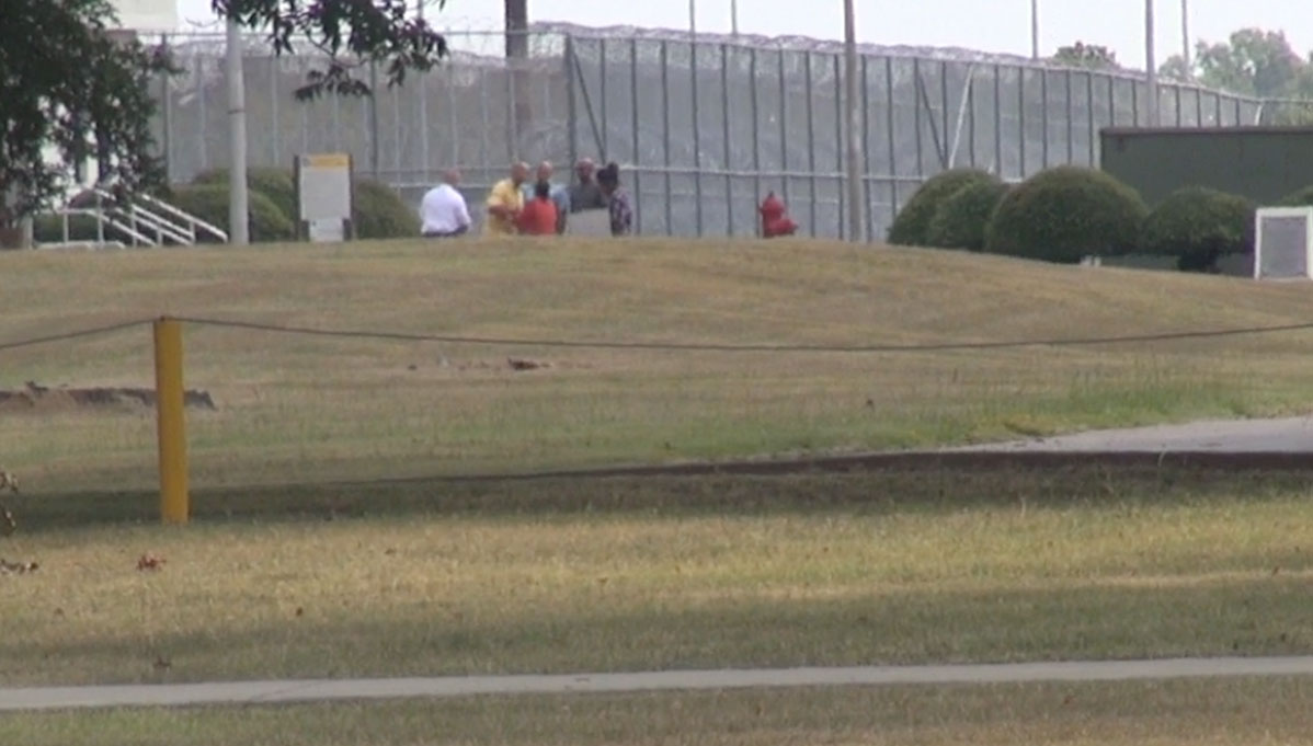 Nagin drove himself in a white Ford car with his three children and wife in the car. About five minutes after entering the parking lot the group exited the car and walked towards the front gate of the prison.