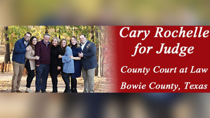 Cary Rochelle has formally announced his candidacy for Judge, County Court at Law of Bowie County, Texas.