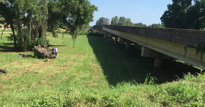 The vehicle left the northbound lane of Highway 71 just before the Red River Bridge and traveled a few hundred feet before rolling.