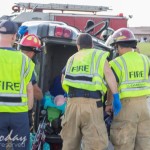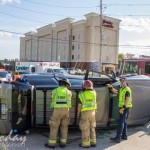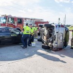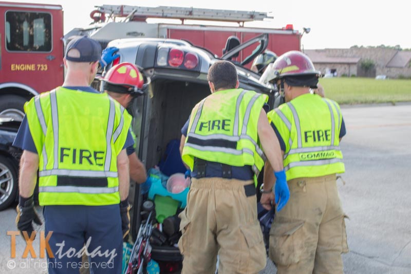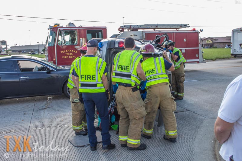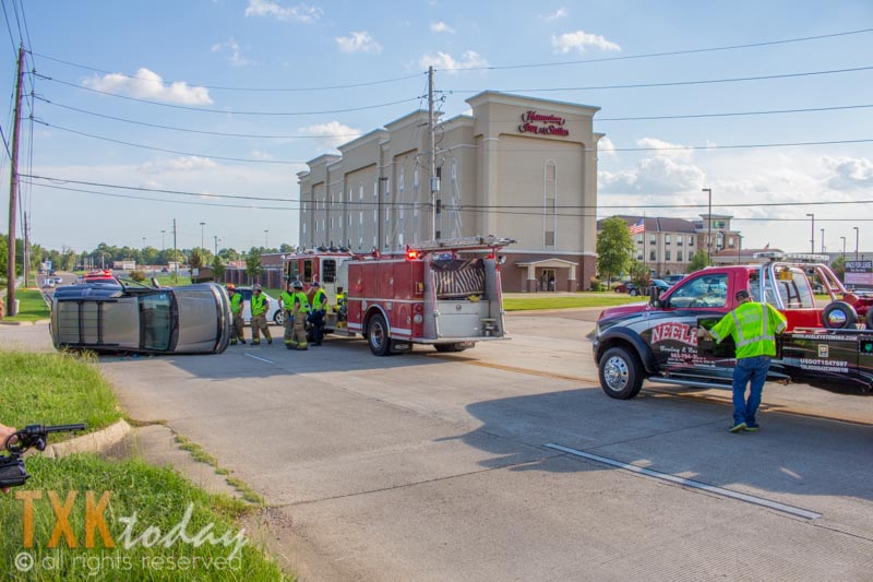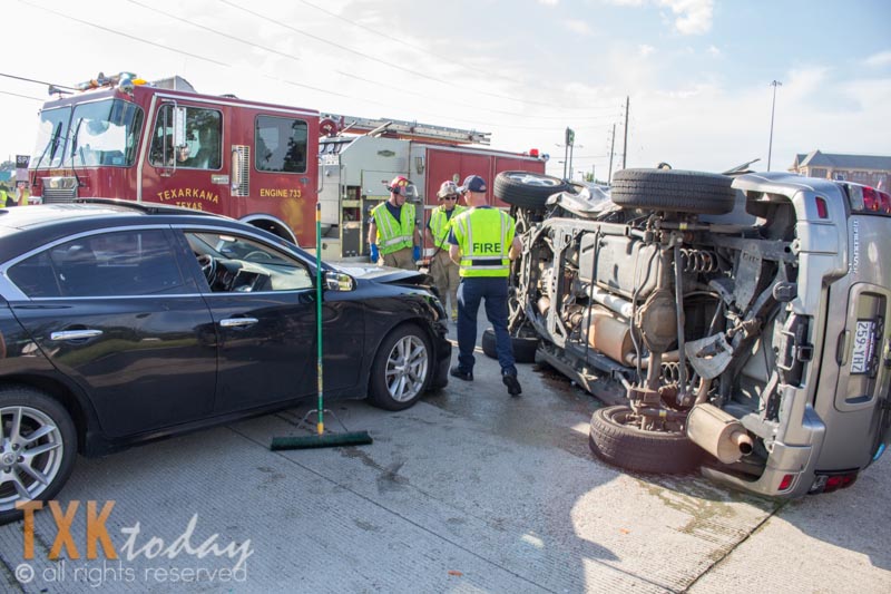 5:45 Monday | Texarkana Texas Police and Fire Departments were quickly on scene of a two vehicle rollover accident at Cowhorn Creek and S. Cowhorn Creek Loop. A Trailblazer carrying two adults and a 14 day old baby was struck by a Nissan Maxima causing it to rollover onto its side.